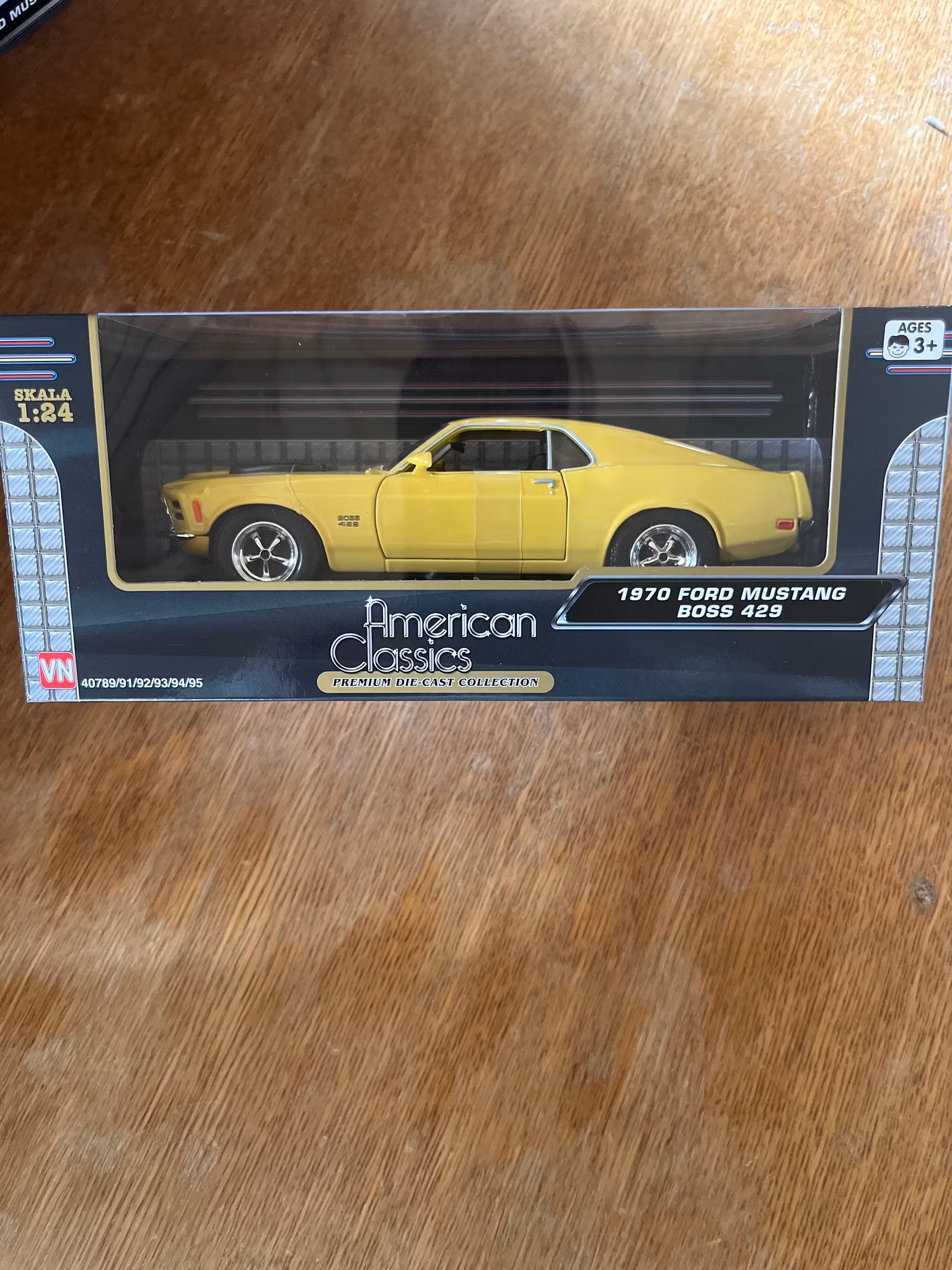 Ford mustang boss 429 1970 300 kr Ford Mustang 1970 boss 429. Metallbil. Öppningsbara dörrar och huv. Skala 1:24 I lager. Lägg i korgen Lagersaldo: 1 Artikelnummer: 172 Dela Information Ford Mustang 1970 boss 429. Metallbil. Öppningsbara dörrar och huv. Skala 1:24
