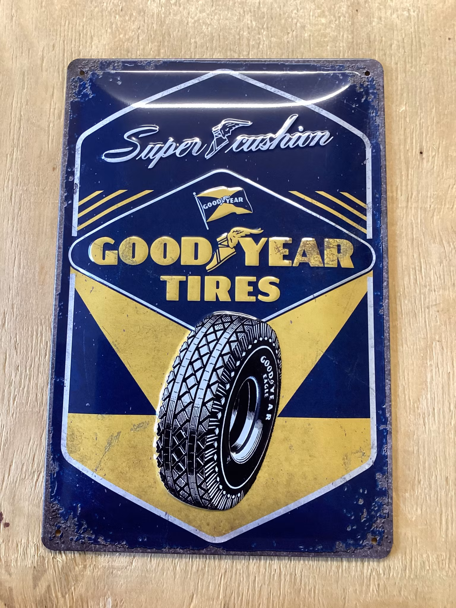 Goodyear tires 150 kr Stl 20x30.. Kupad plåtskylt. Fyra hål för upphängning. Produkten är tyvärr slut i lager. :( Artikelnummer: 128 Dela Information Stl 20x30.. Kupad plåtskylt. Fyra hål för upphängning.